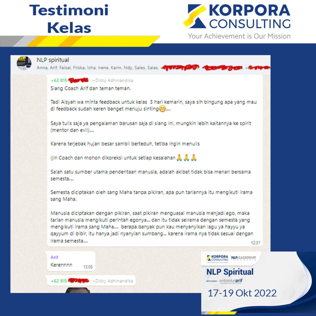 Testimoni Public Class NLP Spiritual Leave a Comment / News / pelatihan, marketing, training, sales, coaching / October 20, 2022 Testimoni Public Class NLP Spiritual Read More »News